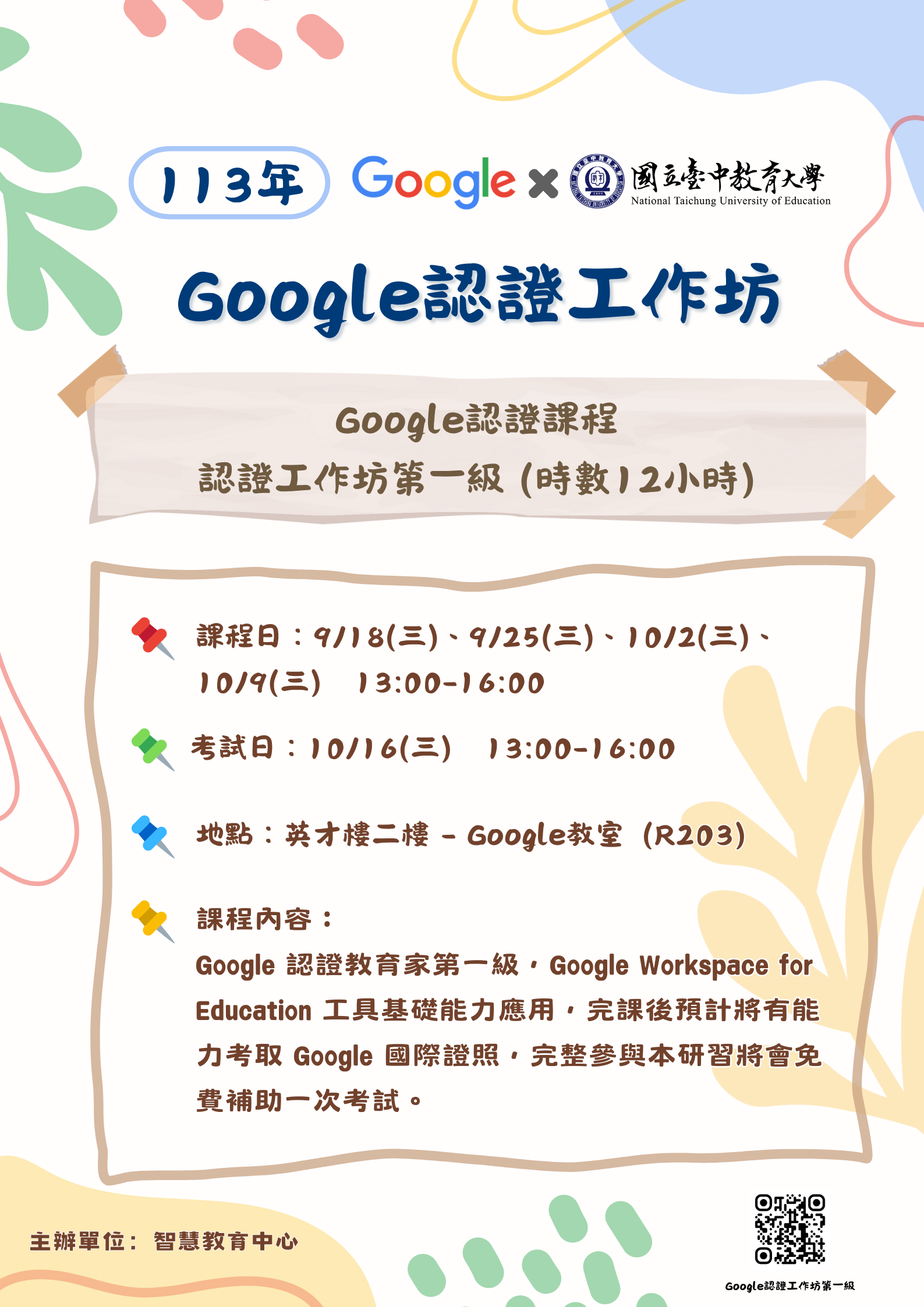 (三)參與 Google認證課程工作坊培訓課程共12小時培訓,並完成資格審查,方可獲得完課證書。